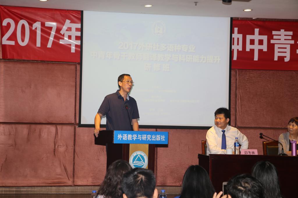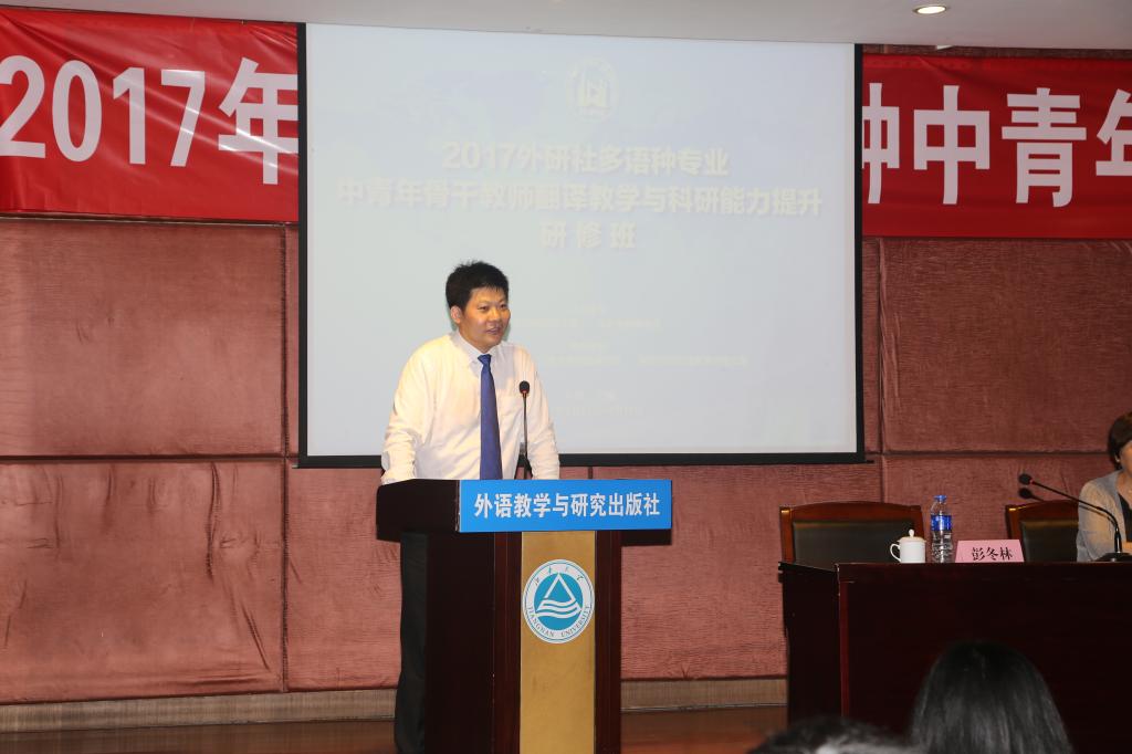 承办的2017年高等学校多语种(日语、韩语、法语、德语、俄语、西班牙语、意大利语、阿拉伯语、越南语)中青年骨干教师翻译教学与科研能力提升研修班在我校长广溪宾馆落下帷幕。这次研修班是在国家“一带一路”倡议全面实施的大背景下,为提升多语种,尤其是非通用语种教师教学与科研能力,进而服务于国家多语种人才的培养来响应国家战略而采取的针对性举措与有效尝试。