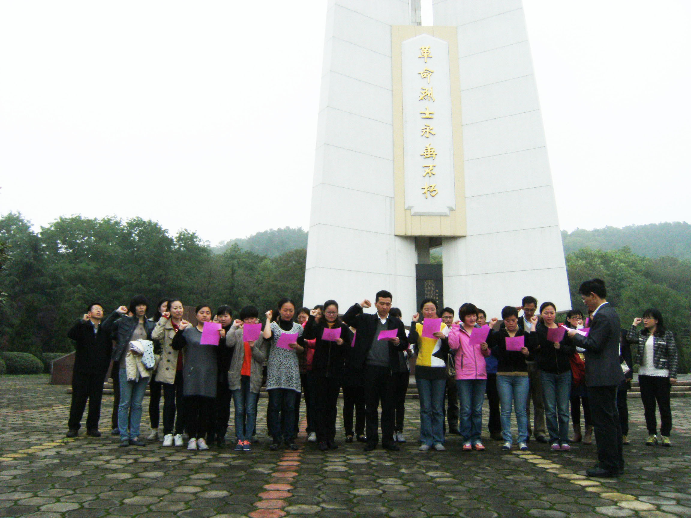 上午,教师们先参观了江阴市革命烈士陵园及江阴市渡江战役纪念馆。通过参观,教师们重温了江阴渡江战役,了解了当年江阴军民革命斗争的情况和百万雄师横渡长江的史实,深切缅怀了英勇献身的革命将士。在纪念碑前,党员们在周书记的带领下,庄严地举起右手,激动而又洪亮的誓言再次响起:“我志愿加入中国共产党,拥护党的纲领……”通过重温入党誓词,每名党员再次感受到作为共产党员的自豪和党员所肩负的神圣历史使命。之后,教师们又参观了江阴爱国主义教育基地鹅鼻嘴公园,了解了鹅鼻嘴公园的文化历史内涵,探究昔日战场遗迹。公园内的鹅鼻洞和炮台见证了江阴人民英勇抵抗外来民族的斗争的史实。正是因为有着反侵略、反压迫的光荣传统,江阴才赢得了“忠义之邦”的美名,也才有了“人心齐,民心刚,敢攀登,创一流”的江阴精神。