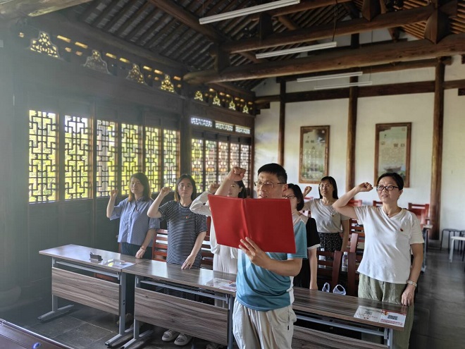 沿着古镇幽静的小路,党员同志们来到古镇的廉政文化交流馆,在这里,学习了寄畅园主秦金至德忠诚、清正廉洁的事迹。之后在廉政文化交流馆,日语系全体党员们抄写廉政诗文《爱莲说》,领会学习两袖清风的廉洁君子周敦颐的精神,重温入党誓词,写下接受廉政教育的感想。