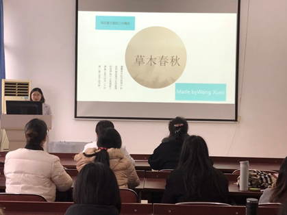 首先,由十名选手带着自己的ppt进行自我展示。选手们结合活动主题,制作了精美的ppt对他们各自作品的创作灵感以及特色进行了介绍。有些选手以思乡之情作为自己的写作主题,而有些选手则是围绕小女生对于爱情的雀跃之情做了刻画。每种阐释都令人眼前一亮,展现了一品探花