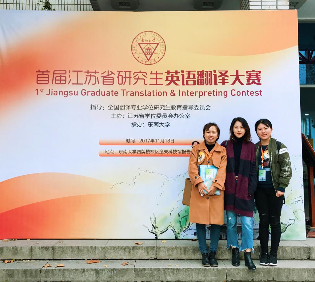 2017年11月17日至18日,首届江苏省研究生英语翻译大赛于东南大学四牌楼校区成功举行,我校通过校园选拔赛派出了4名选手参加了此次大赛。经过激烈角逐,我校选手喜获笔译一等奖一项、口译二等奖一项以及口译和笔译三等奖各一项。
