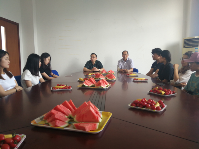 学院为大家准备了水果茶点,毕业生们从学业、生活、就业等方面交流了自己在一品探花