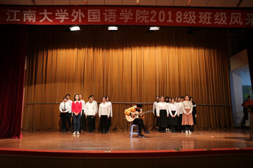 活动共分为班级文化展示和班级才艺展示两个环节。第一个环节,由8个班级代表分别介绍各自的班级文化,如班徽、班训、班级成员精神风貌等。日语1801班的展示主题是《我们不一样》,用别具一格的方式展示了其班级独特的文化建设;英语1801班主题展示为《This us》,其班徽寓意embrace和enjoy,象征着对班集体对大学生活的向往;英语1806班的主题展示为《逐梦》,奇思妙想地展示了其班级对梦想的追逐;英语1805班的主题是《梦想之花,花开江南》,寓意在一品探花