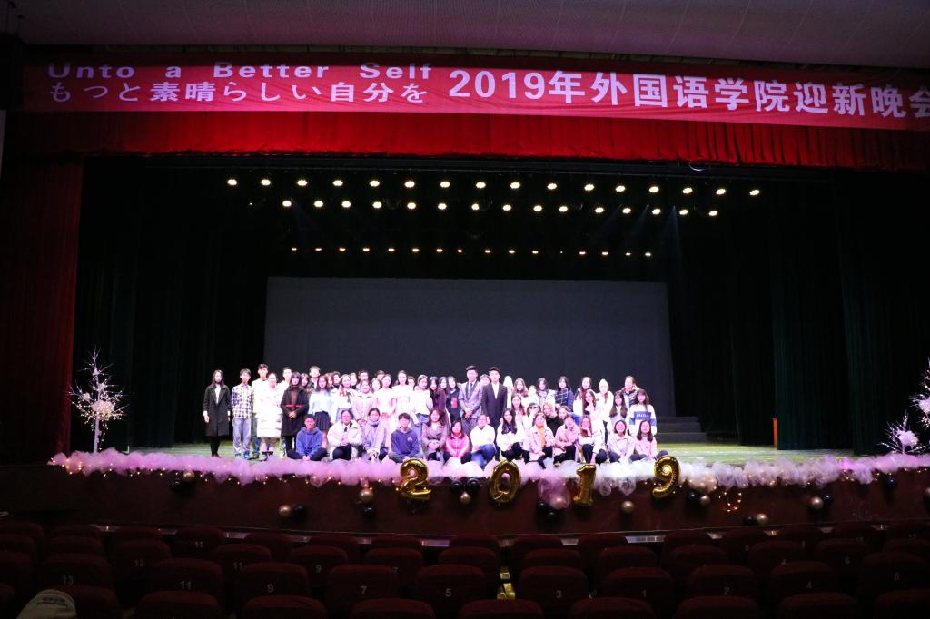 “Unto a Better Self もっと素晴らしい自分を ”迎新晚会在2019年1月11日晚18:30在文浩馆如约而至。出席本次晚会的有院党委书记黄城芳、党委副书记、副院长刘伯贤、副院长方文开、朱义华、施惠平、分团委书记杨艳、辅导员老师、各位班主任老师及各嘉宾老师。学院各年级学生也热情参与,师生同乐,欢聚一堂。