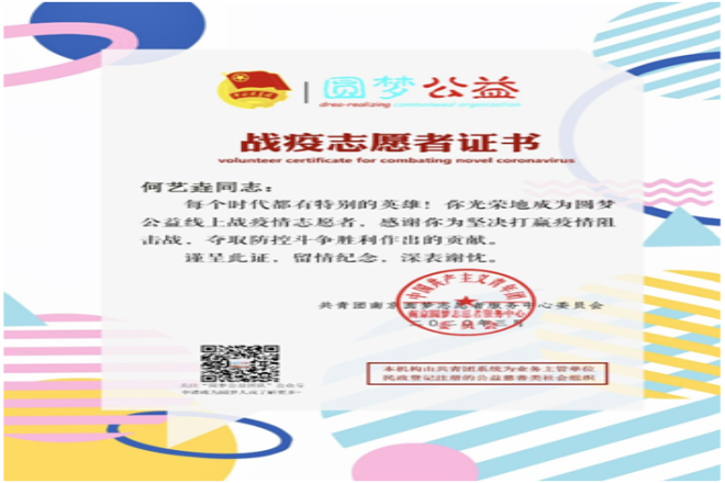 日语1901何艺垚战役志愿者证书