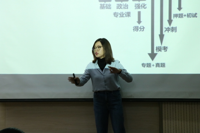 会上,2017级优秀考研学姐与同学们分享考研经验,向同学们讲解自己的备考历程,帮助大家选择考研目标,熟悉备考流程,掌握各阶段的复习技巧,增强考研斗志。学姐向大家强调了院校选择的重要性,提醒大家注意政策变化,掌握最新的考研信息,然后找到适合自己的复习策略,并提醒考研同学最重要的是调整好心态。