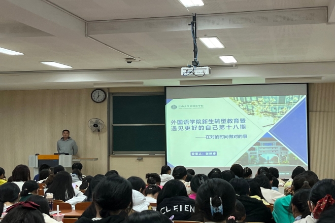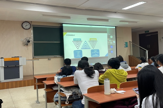 新生转型教育暨“遇见更好的自己”第十八期在教学楼1A410开展。本次活动以《在对的时间做对的事—文科生的创业历程》为主题,邀请了学院优秀毕业生、脑洞英语课堂创始人谢婷婷线上分享创业经验,学院22级新生以及部分21级、20级同学参加分享会。分享会由辅导员苗文建老师主持。