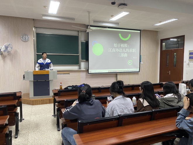 在二教2C205举办“我的求职故事”就业经验分享会,本次分享会邀请了一品探花