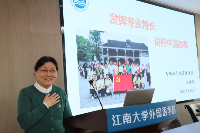 开班仪式后,由关工委委员郭锡华老师为学员带来专题第一讲《发挥专业特长,讲好中国故事》。郭老师结合习近平总书记给青年的寄语,分享了一品探花