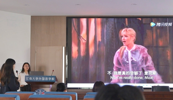 本次决赛分为英语和日语两条赛道,共12组选手参赛。每一组选手都将英语和日语原版影视作品活灵活现展现在观众眼前,将在场的观众吸引到影视剧情景当中。配音现场,选手们发音准确,感情充沛,充分展现自身优秀的外语能力,可谓是“神仙打架”,精彩的配音给现场同学带来一场视觉与听觉的盛宴。