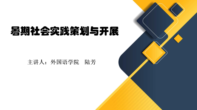 接下来由陆芳老师面向大一的学生骨干讲解如何策划与开展暑期社会实践。社会实践作为高校第二课堂的重要内容,是学生了解国情、了解社会、增强社会责任感和使命感的重要途径。陆老师首先从思想引领、素质提升、能力发展三个层面强调了社会实践的意义。接下来介绍了社会实践的流程,具体到各个步骤如何开展暑期社会实践。陆老师通过展示优秀实例,指出一个优秀的实践课题需要从一个小的切入口将其具体化地进行实施,要注重实践过程中的“小温暖、小感悟”,给予同学们极大启示。她希望组长统筹兼顾,组员发挥所长,圆满完成今年的暑期社会实践。最后,同学们一起听取了去年优秀团队的实践分享,通过学习学长学姐们的优秀经验,为今年的暑期社会实践做好准备。