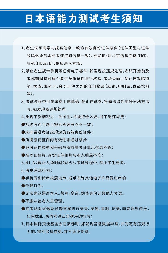 5.证书邮寄服务:需要办理证书邮寄的考生可加入江大日本语能力考试群(QQ群号:366020198), 群内届时(成绩公布后)会发布邮寄通知。如有疑问,请致电考点咨询电话:0510-85919985。
