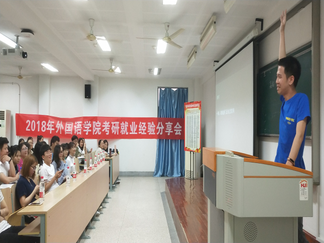 日语1402的聂翔学长以外交学专业总成绩第一名的成绩成功考入外交学院,他尤其强调了暑期夏令营的重要性和兴趣的驱动力。英语1401班的朱玲学姐,九月份即将就读于华东师范大学数学学院,学姐作为跨专业考研的代表,为同学们分享了她的考验规划和心理路程,并告诫大家心态在考研长跑中尤为重要。