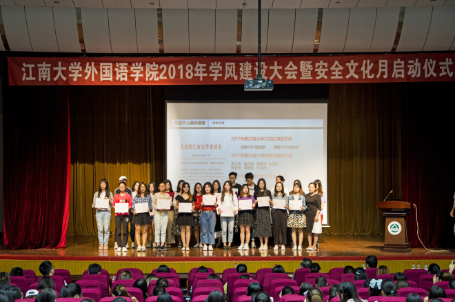 2018年学风建设大会暨安全文化月启动仪式于5月31日晚在南活报告厅如期举行。校学工处副处长汪双喜、院党委书记黄城芳、分团委书记杨艳、辅导员张圆、黄颖以及15级、16级、17级全体学生到场参加,大会由院党委副书记刘伯贤主持召开。
