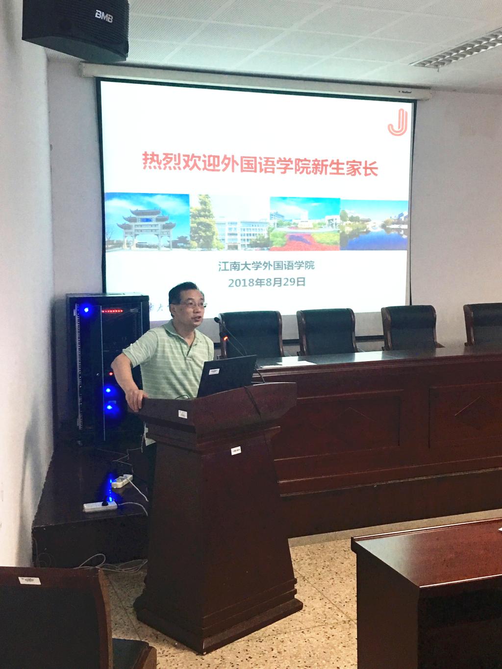 的发展历程和基本情况,并对家长提出了三点希望和要求:一是紧抓对孩子的思想教育,家校互动,共同教育,关心孩子的身心健康,注意防骗,防止误入歧途;二是始终关心孩子的学习和生活,作为家长要了解孩子的学习状况,鼓励孩子升学考研;三是教育孩子遵守校纪校规,认真阅读《学生手册》,严守规范。接着,龚晓斌院长以“来江南遇见更好的自己”引出了话题,他从三个方面给予新生家长一些建议:一是学生管理方面,要守住及格、诚信、安全这“三条底线”;二是学习规划方面,对专业学习、考研保研、海外交流、人生规划和设想等方面提出了中肯的建议;三是专业发展方面,通过几则参考案例,鼓励学生升学考研,提升竞争力,走上更广阔的的发展舞台,他希望每一位新生未来都能学有所成,平平安安毕业,更好地发展。