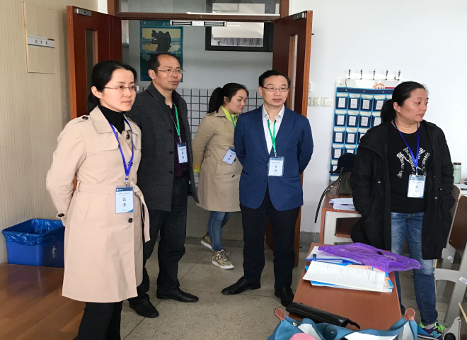党委书记黄城芳(左四)、党委副书记刘伯贤(左二)巡视考场