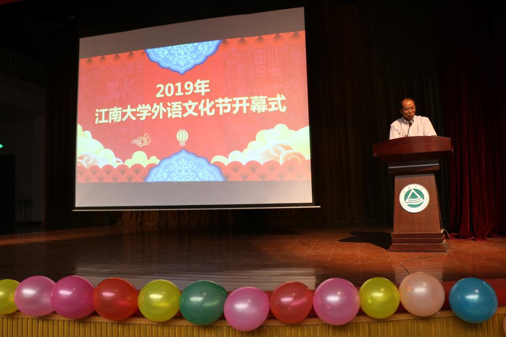 活动伊始,校学工部副部长汪双喜老师致辞。汪双喜老师首先对本届外语文化节的开幕表示了热烈的祝贺,并向付出辛勤劳动的老师同学们表达了衷心的感谢。他指出外语文化节是学校校园文化建设中的重要部分,也是学校提升人才质量的一项重要举措。本次外语文化节活动为江南学子搭建了一个活泼、有序、多元的语言文化交流平台和学习环境,激发了同学们学习语言的兴趣。希望广大江南学子在本次文化节中尽情释放自己的学习热情,共同掀起外语学习的浪潮。