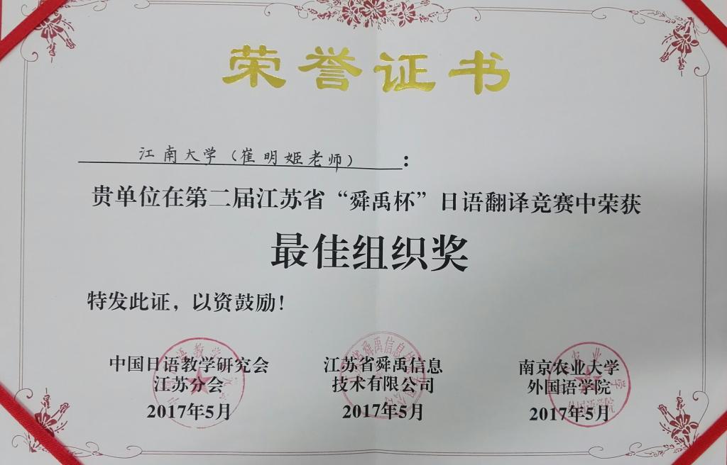 2017年5月14日,第二届江苏省“舜禹杯”日语翻译竞赛颁奖式暨学术研讨会今日在南京农业大学隆重召开。一品探花