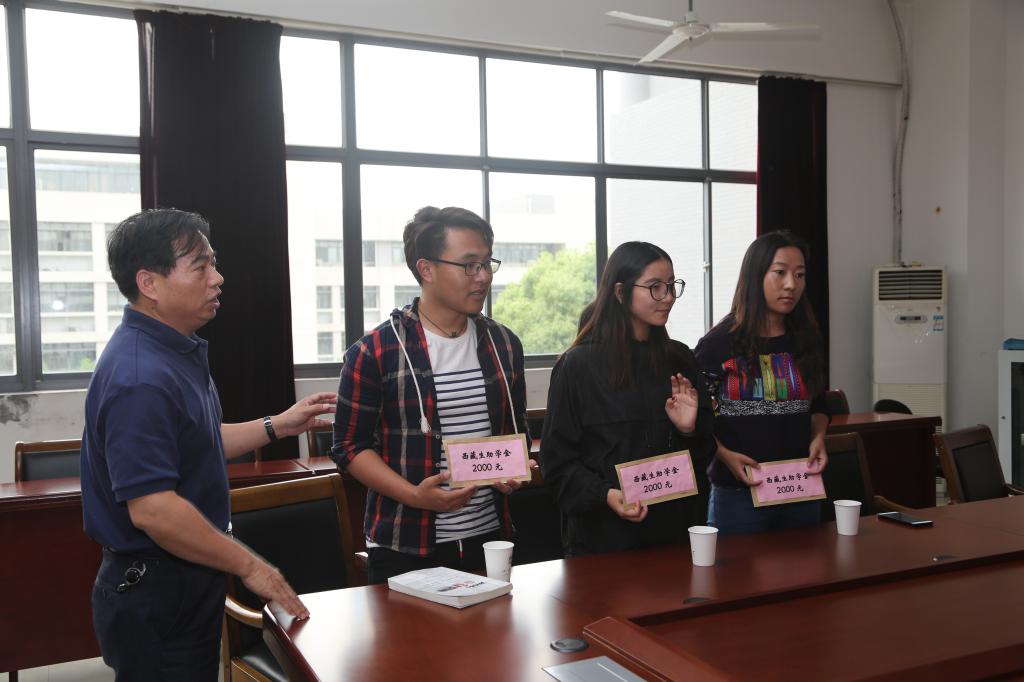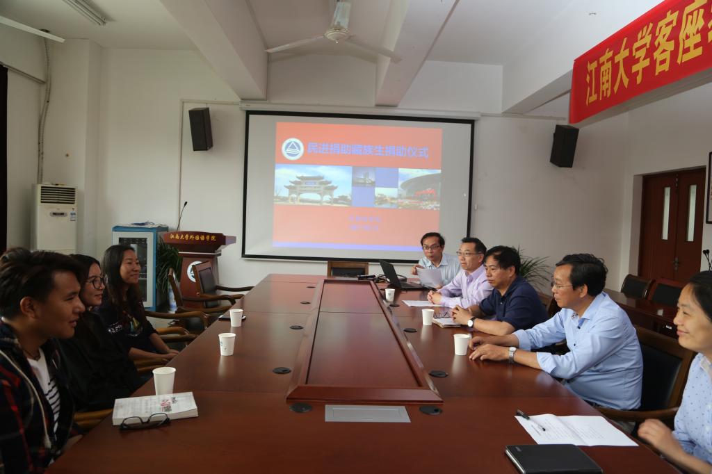食品学院副院长杨瑞金手中接过了民进江大会员捐资提供的助学金共计6千元。作为民进江大社会公益活动的一项重要工作,此项助学行动先后在杨主委和新一届民进江大主委龚雁的领导下进行部署与实施,自2014年起历时四年,旨在于帮助三名少数民族学生顺利完成本科学业,既是让他们感受来自母校的关爱与温暖,也是鼓励他们在校努力学习,毕业后更好地服务于家乡的民族事业以及经济发展。捐赠仪式由一品探花