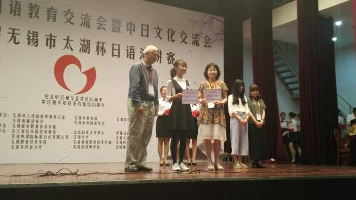 下午12点45分,演讲比赛正式拉开帷幕。经过激烈的角逐,我校学生凭借精彩的演讲,流利的日语,从来自8个学校的17名选手当中脱颖而出,赵羽熙、周子涵、张亚鑫三位同学分别荣获学生组的特等奖、一等奖和二等奖。中西由美子、西川明子、藤田美奈子三位老师也荣获得优秀指导教师奖,无锡市翻译协会会长为获奖选手与指导老师颁发了荣誉证书。除此之外,我校2016届毕业生陈天泓代表三菱东京UFG银行参加比赛,荣获社会组特等奖。学生们取得优异成绩充分证明了我校日语水平,为我校赢得了荣誉!