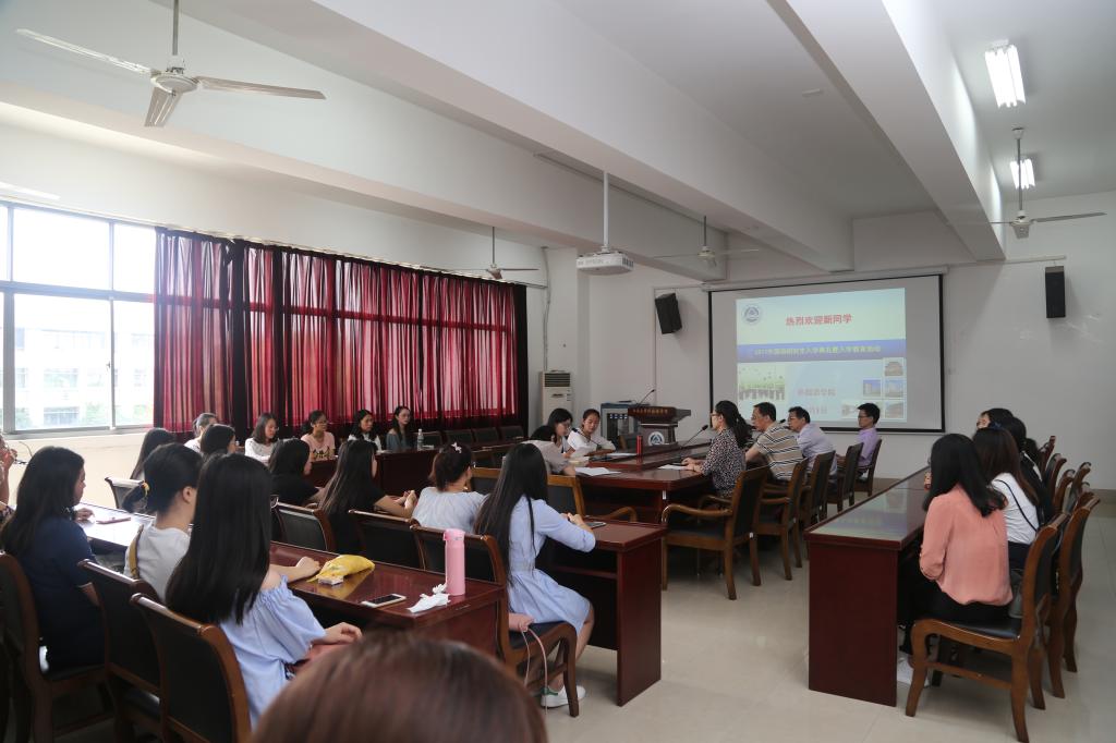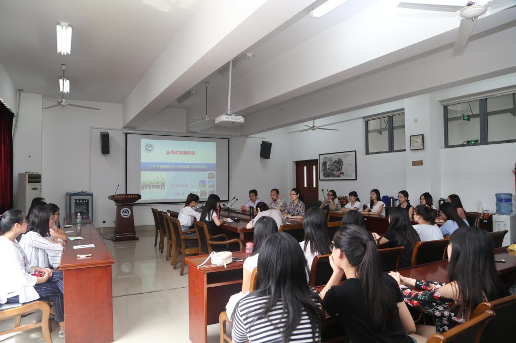 党委书记黄城芳、院长龚晓斌、党委副书记赵莹、副院长朱义华、研究生辅导员陈昀、研究生教学秘书翟成娟及2016级研究生代表和2017级全体新生,副书记赵莹主持了本次活动。