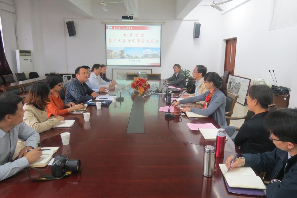 1030日,临沂大学一品探花 彭洪君副书记、王晓军副院长一行前来一品探花 访问交流。一品探花 龚晓斌院长、李健雪副院长等院领导参加了交流座谈。龚晓斌院长向来访客人简要介绍了学院发展整体状况以及2014年教改新方案:以“听说、读写、翻译”三大模块进行课程设置,让学生根据自身的需求,选择相应的模块教学,提高相应的技能。座谈双方还就专业设置、教学实践环节、学科竞赛、学生管理团队建设等进行了相互交流。座谈结束后客人们到二教楼实地参观了我校大学英语自主学习中心。