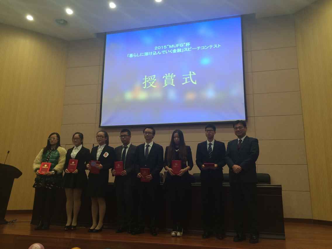 选手们从不同角度阐述了自己对于“金融走进生活”的理解,通过多媒体、现场互动等形式,生动地表达了自身的观点。既展现了个人风采,也体现了当代大学生对社会、经济、人文的关注与思考。他们激昂的语调、慷慨的陈词赢得了现场评委的一致好评。比如第八组的参赛队员将自己的演讲内容与多媒体课件结合,阐述了对支付宝、余额宝等新兴金融事物的理解。流利的日语、缜密的思维和与时事的结合深深地吸引了大家的注意。经过激烈的角逐,日语1303班的郑盼盼、孙宇等同学获得了特等奖,日语1201的陈天泓、崔梦婕等同学获得了一等奖。