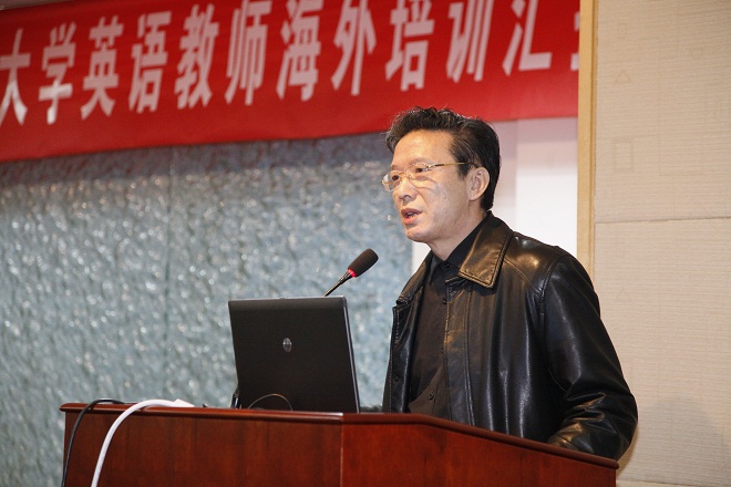 2015暑期大学英语教师海外培训汇报会”在文浩馆205报告厅如期举行。人事处张影陆处长、国交处钟芳处长、教务处曹栋处长、学院龚晓斌院长、黄城芳书记、李健雪副院长以及一品探花