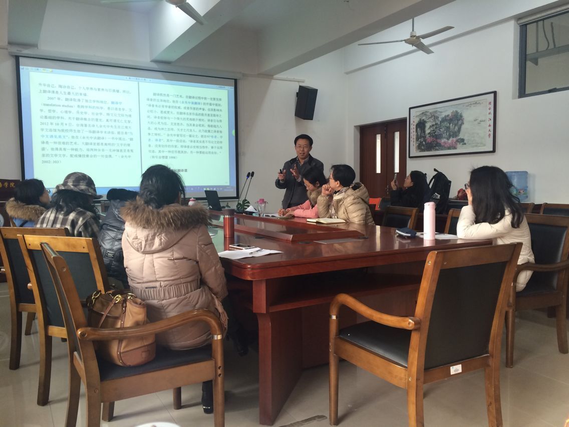 根据学校对于人才培养的新要求,秉持“各取所需,个性发展,强化能力,突出应用”的改革理念,2014年起,实施了全新的大学英语课程模块设置和修读模式,以满足社会和学生发展的多元需求,提高学生的语言应用能力,帮助他们提升国际竞争力。在一年多的教改实践中,针对翻译模块师资紧缺、教师在岗专业培训系统化、持续化、常规化与精准化不足等问题,以提高翻译模块教师教学与科研水平,最终提高教学质量为宗旨,大学英语拓展部精心组织了“卓越课堂”翻译模块互动式系列讲座。系列讲座主要邀请翻译方向的资深教授与翻译模块教师进行翻译教学研究方面的分享、交流与互动。首场讲座于12月28日在一品探花