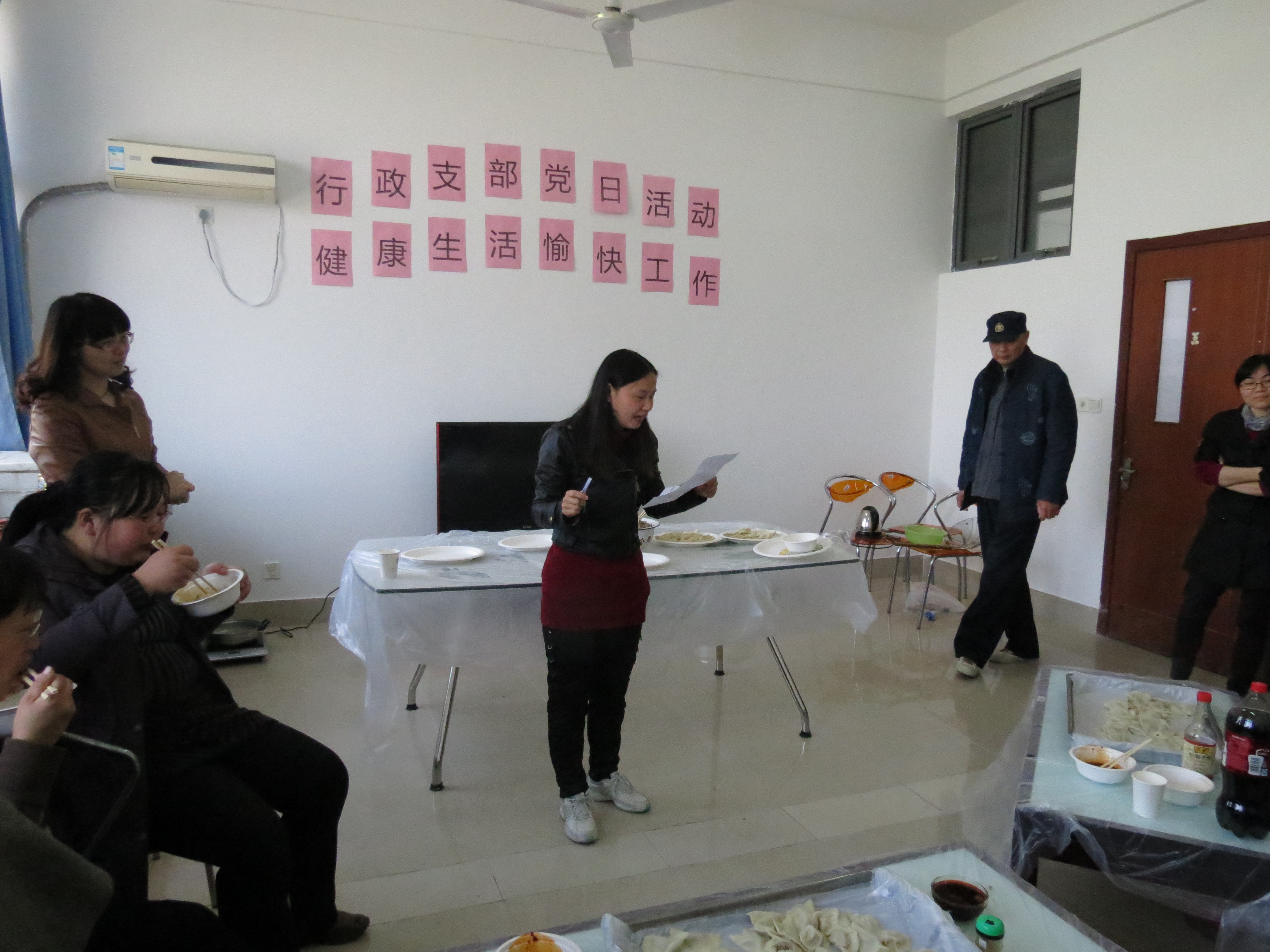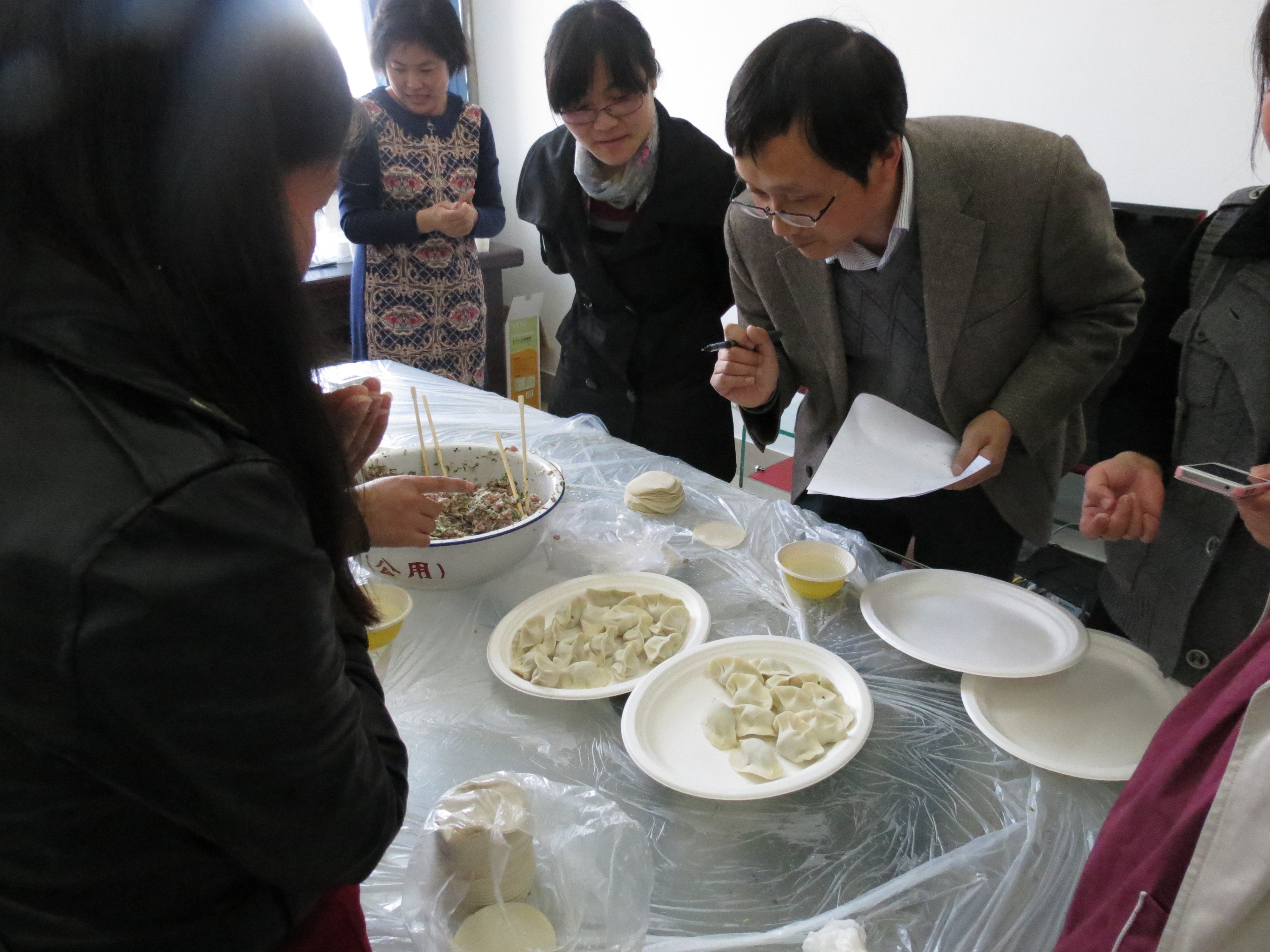 一品探花 党委紧紧围绕上级党委部署和要求,多措并举,扎实推进党的群众路线教育实践活动深入开展。为了进一步加强党员干部同人民群众的血肉联系,同时倡导健康生活理念,关注食品安全,培养良好的生活方式,提升教职工的身体素质,弘扬体育精神,一品探花 教工行政党支部于4月4日中午开展了主题为“健康生活,愉快工作”的系列党日活动,支部全体党员均参加了本次活动,学院党委委员龚晓斌老师、张晓虹老师、施惠平老师也应邀参加。活动现场气氛十分热烈,不时传来阵阵欢笑和掌声,许多非党员教职工也前来现场观摩,并参与活动。本次活动分为两场,第一场为包饺子及吃饺子大赛,第二场为乒乓、羽毛球友谊赛。