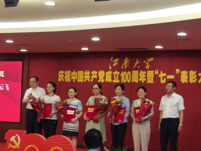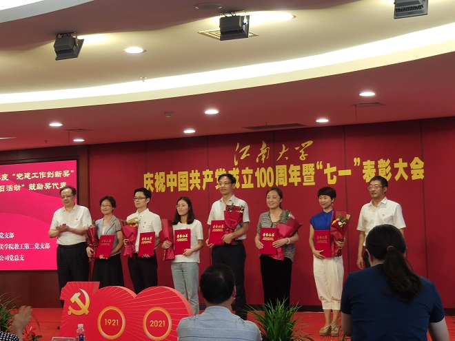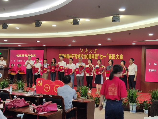 庆祝中国共产党成立100周年暨“七一”表彰大会在我校图书馆五楼报告厅隆重举行,校党委副书记戴月波主持大会,校党委书记朱庆葆、校长陈卫为受表彰的个人和集体代表颁奖。
