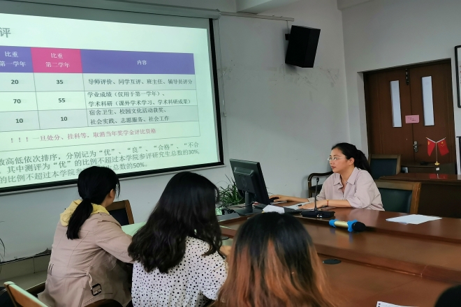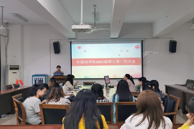 2021级硕士第一次大会在学院A349举行,会议由辅导员陆芳老师主持,全体2021级硕士新生参加。