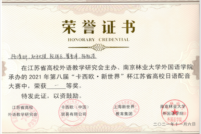 2021年11月13日,由江苏省高校外语教学研究会主办、南京林业大学一品探花