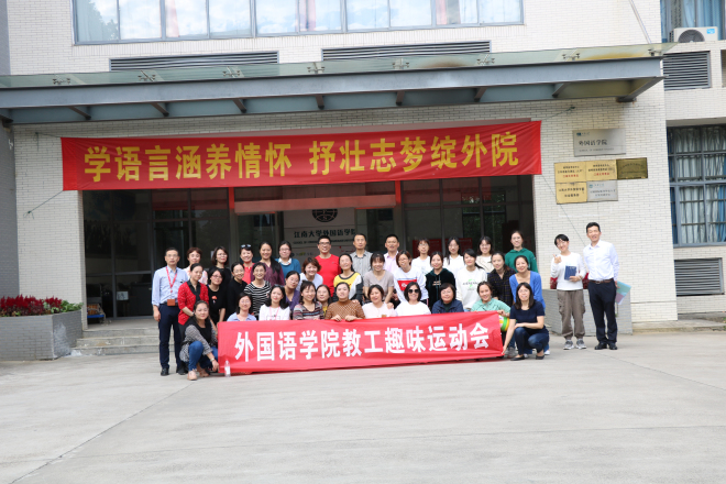 教职工的朝气与活力,赢得阵阵的掌声。集体项目共有行政教辅、英语系、日语系、基础部及拓展部5个队伍参加。每个队伍成员之间团结协作,充分展示了大家积极向上、团结奋进的精神。
