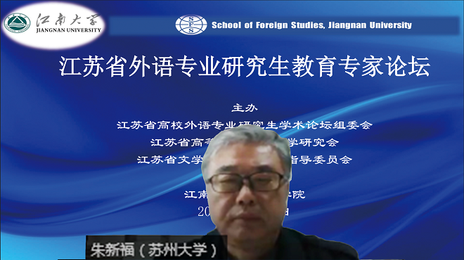 研究生培养工作汇报》的主题讲座。在讲座中,朱新福教授先从基本信息、学科支撑、培养目标等角度,总体上展示了苏州大学的研究生培养体系;随后以苏州大学MTI专业建设相关问题为例,向各兄弟高校在如何进一步完善研究生培养体系方面提供了宝贵的经验。紧接着,江苏省中青年科技带头人,江苏省文学类研究生教指委委员,中国英汉语比较研究会翻译史专委会副会长,世界中医药学会联合会翻译专委会副会长,世界翻译教育联盟语言景观翻译与教学研究会会长,教育部、国家语委《公共服务领域英文译写规范》国家标准研制专家,江苏省科技翻译工作者协会副会长,国家社科基金评审专家和结题鉴定专家,国家语委科研项目评审专家、南京农业大学一品探花