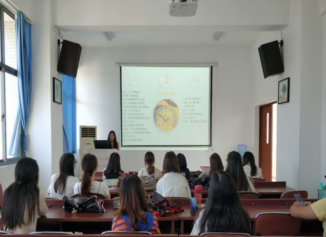 各个事项宣布完之后,2017级主席白雅冰同学进行年度汇报总结,向全体研会成员讲述过去一年中研会举办的主要活动和各部门成员对研会作出的贡献,还总结了研会目前存在的不足和需要改进的地方,最后分享了个人在研会中的收货和成长。研会的主要活动有学院研究生论坛、U-Talk、联谊晚会、世界跆拳道大赛志愿者招募、研本交流会、科研神器交流会、“三行小诗”等等。研会要以服务学院同学为宗旨,经常与兄弟学院研会成员交流,多举办创新型活动。