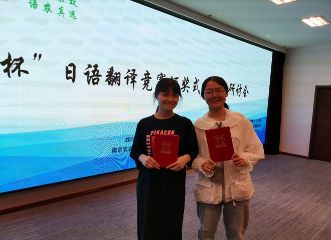 日语系穆澜同学、戚维欣同学分别获得中译日组二等奖和三等奖,崔明姬老师代表一品探花