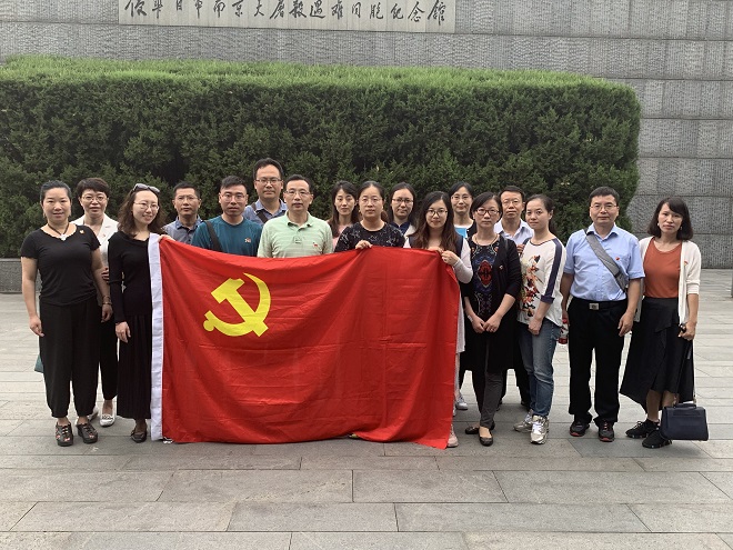 英语系党支部17位党员在院党委书记黄城芳、支部书记彭方针的带领下,乘坐巴士赴南京参观侵华日军南京大屠杀遇难同胞纪念馆和南京博物院,开展“不忘初心、牢记使命”主题党日活动。
