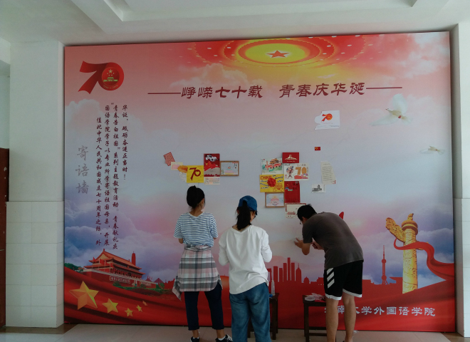 在研究生、本科生各个班级中组织开展了国庆歌咏比赛、寄语祖国手卡制作、微视频作品等“青春告白祖国”系列活动。