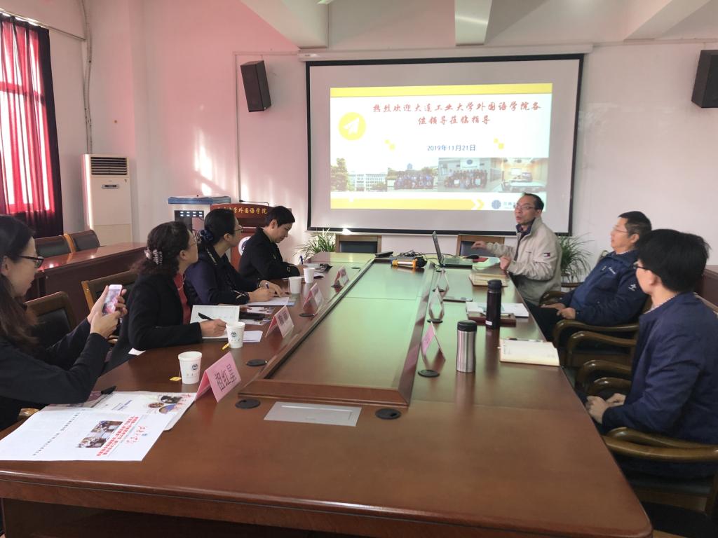 的接待表示感谢,介绍了大连工业大学外语学院的基本情况,并希望同为理工科大学的外语学院,能在如何完善“外语+”专业课程设置、学科发展等方面借鉴一品探花
