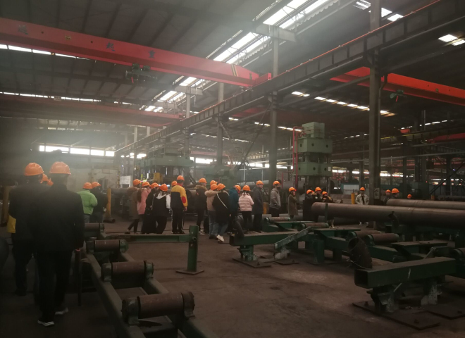 来到企业,同学们实地参观钢管的生产。一进工厂,隆隆作响的机械轰鸣声,大大小小的钢铁机械,给一直生活在象牙塔的同学们带来了不小的震撼。带队的工作人员对钢管工作点和加工过程的认真介绍,更是让同学们深切体会到了制作钢管的不易之处。