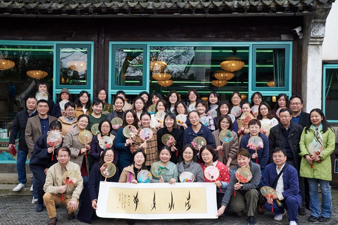 分工会精心筹备开展了主题为“展现女性风采,传习非遗文化”的体验活动。3月29日下午,我们组织学院广大女教师走进惠山古镇女书学院,学习非遗女书,体验团扇手工制作。