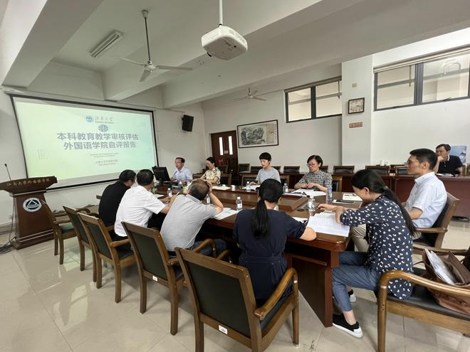 对自评工作的投入。评估组认为,学院在党的领导下,不断凝练质保理念、提升教育教学水平,积极推进教育教学综合改革,取得了显著成效。会上,评估组成员也从不同的角度对报告进行了细致的分析,提出了文本修改意见和教学实践相关建议。这些意见和建议将为学院进一步完善自评报告提供借鉴和指导。李荣华代表学院向评估组表达了诚挚的感谢,并表示,学院将进一步凝练自评报告,突出外语特色和亮点,真正做到以评促建、以评促教、以评促学,以最佳状态迎接校外评估专家的到来。