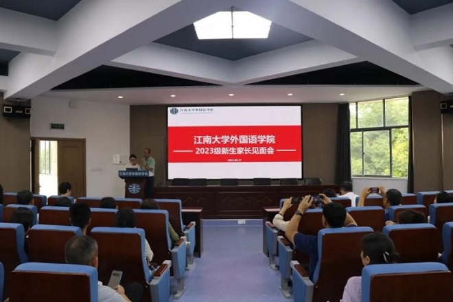 首先,李荣华致欢迎词,对与会家长表示热烈的欢迎和真诚的感谢,对步入江大外院的新生们表示热烈的祝贺。接着,刘伯贤从学院介绍、专业介绍、师资力量、课程体系、人才培养、家校共育等六个方面介绍了一品探花