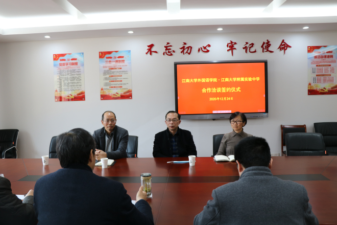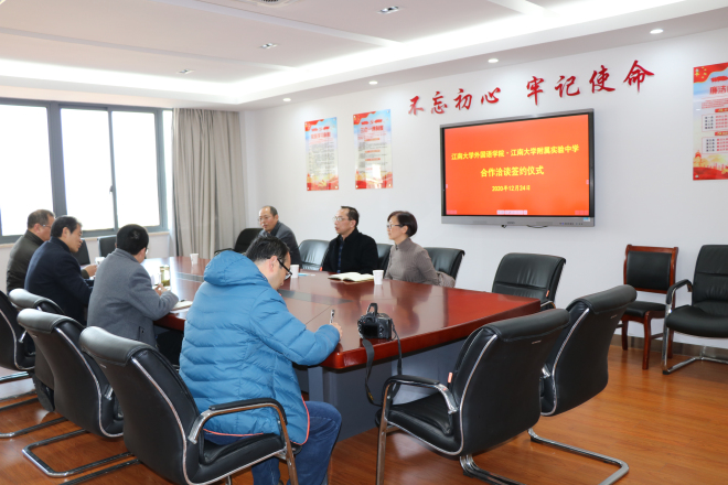 附属实验中学六楼会议室举行。学院院长方文开、党委副书记刘伯贤、副院长顾琦一、附属实验中学校长吴卫东、校党总支书记王星、副校长陈柏林参加了签约仪式。