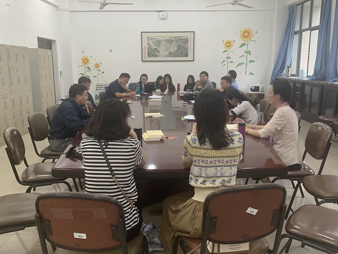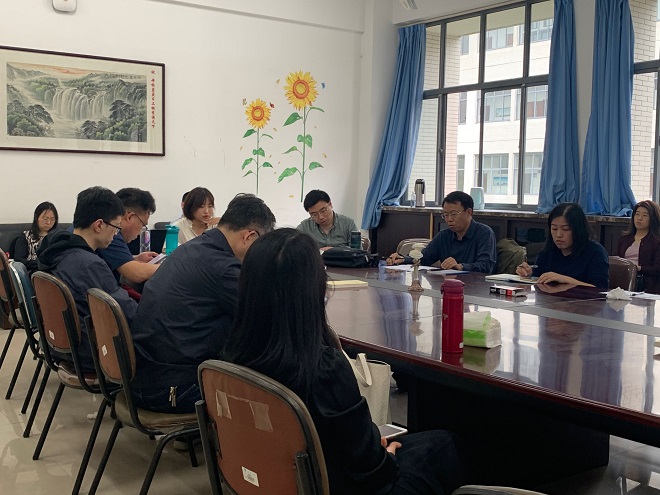 英语系全体教师在文科楼B309召开了“铸魂润心”的师德师风教育、课程思政交流会暨“三全育人我当先”主题党日活动。会议由英语系主任党员教师孙志祥教授主持,副院长谢竞贤出席党日活动并上了一堂题为《遵义会议对现实工作的启示》的党课。