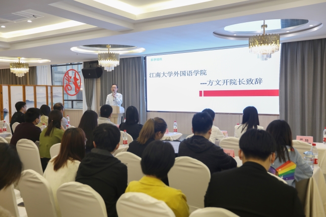 院长方文开致辞。方院长就此次校企合作向宋校长以及各位校友表示了感谢与支持,肯定了合作在促进学生和企业共同发展、促进基础教育教学、讲好“中国故事”等方面的重要意义。最后,方院长表达了双方进一步加强合作的期许,并欢迎各位江大毕业的学子常回母校。