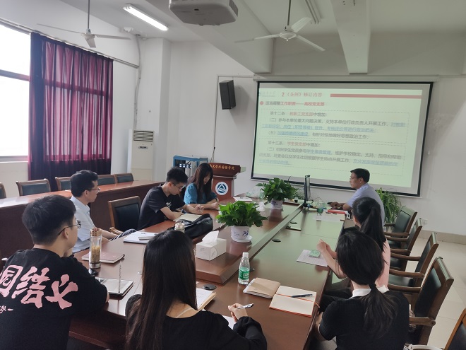 会上,史书记首先重点解读了《中国共产党普通高等学校基层组织工作条例》。他指出,《条例》的修订和实施,对于全面贯彻党的教育方针,落实立德树人根本任务,建设高质量教育体系、建设教育强国,具有重要意义,全体党支部要认真学习、遵照执行。在史书记还领学了《一品探花