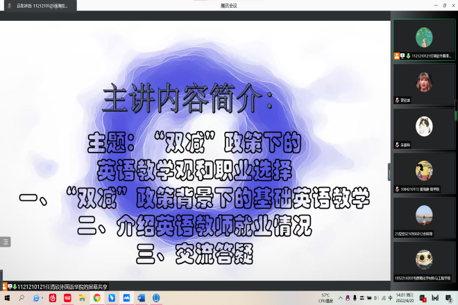 钱薇薇老师线上参与主讲“双减政策下的英语教学观和职业选择”主题圆桌会,会议持续一小时左右,吸引了来自一品探花