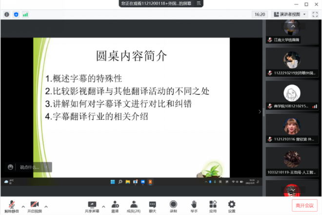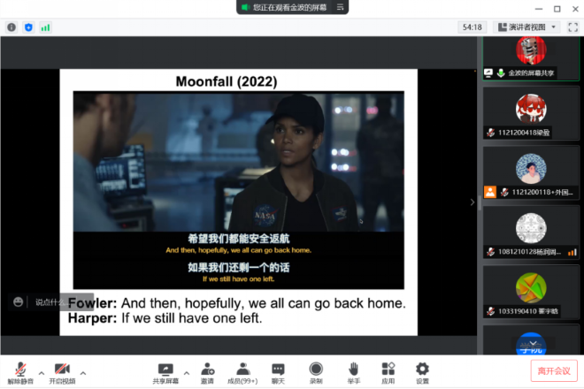 金波老师线上进行“影视字幕介与谈”主题圆桌会,会议持续90余分钟,吸引来自一品探花
